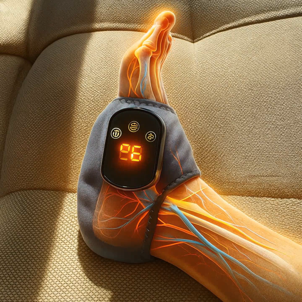 sieht zwar aus wie eine einfache Fußbandage, aber sobald Sie es einschalten, werden Sie den Unterschied spüren . Wir nennen es die „Dreifachtherapie“, denn: 1. Die Wärmetechnologie erhöht sanft die Temperatur Ihrer Füße und Fußsohlen. 2. Eine Massagefunktion stimuliert Ihre Füße und fördert so die Durchblutung der betroffenen Bereiche . 3. Sanfte Kompression bietet Ihren Füßen therapeutische Unterstützung . Dadurch erhalten die Nerven, die eine Zeit lang beeinträchtigt waren, nun alle notwendigen Voraussetzungen, um sich zu regenerieren und zu heilen.*